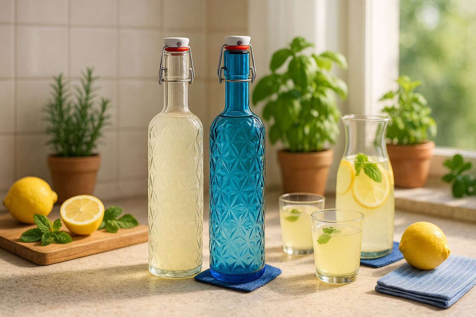 Die Serie „Oriente“ vereint kunstvolle Ästhetik mit funktionaler Perfektion. Inspiriert von orientalischen Elementen, besticht diese Flasche durch ihren facettierten Körper, der Lichtreflexe auf elegante Weise einfängt und dem Design eine luxuriöse Tiefe verleiht. Erhältlich in den Farben Klar und Azurblau, setzt sie besondere Akzente und bringt Exotik und Eleganz in jede Umgebung. Der luftdicht schließende Bügelverschluss sorgt nicht nur für eine sichere Versiegelung, sondern unterstreicht auch die traditionelle Handwerkskunst, die in dieser Flasche steckt.