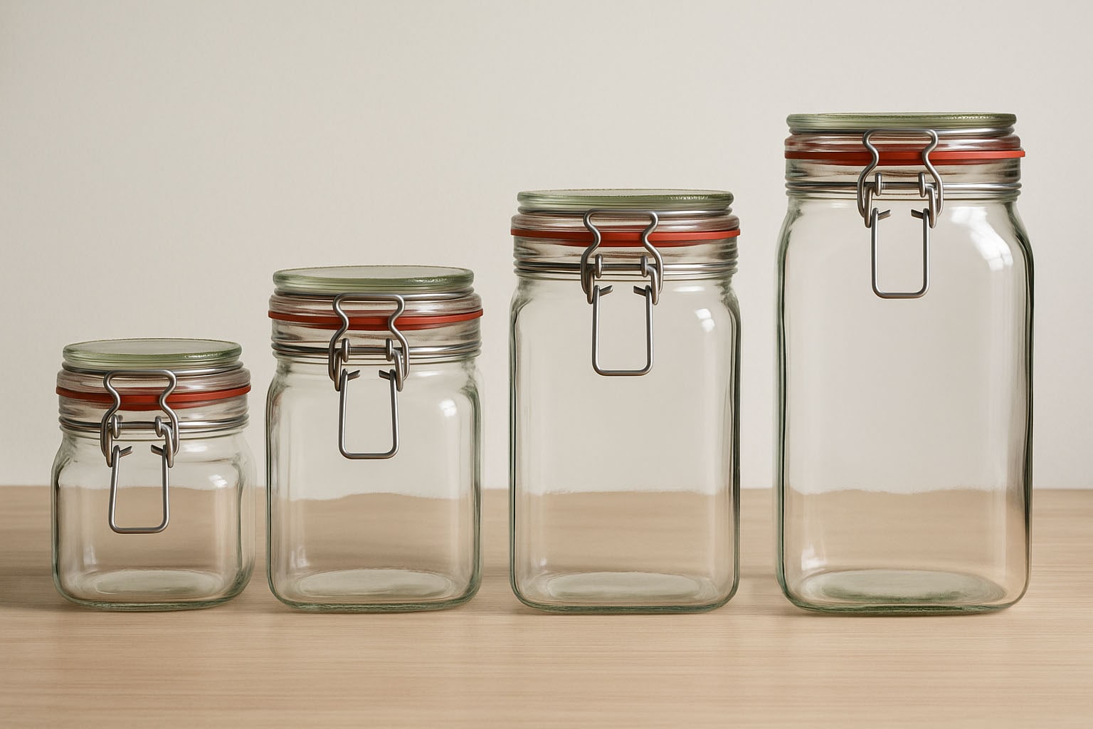 Die Drahtbügelgläser eignen sich ideal zum Einkochen und Konservieren von hausgemachten Spezialitäten wie Marmeladen, Chutneys oder eingelegtem Gemüse. Auch für die Aufbewahrung trockener Lebensmittel wie Müsli, Mehl oder Hülsenfrüchte bieten sie eine hygienische und stilvolle Lösung.
