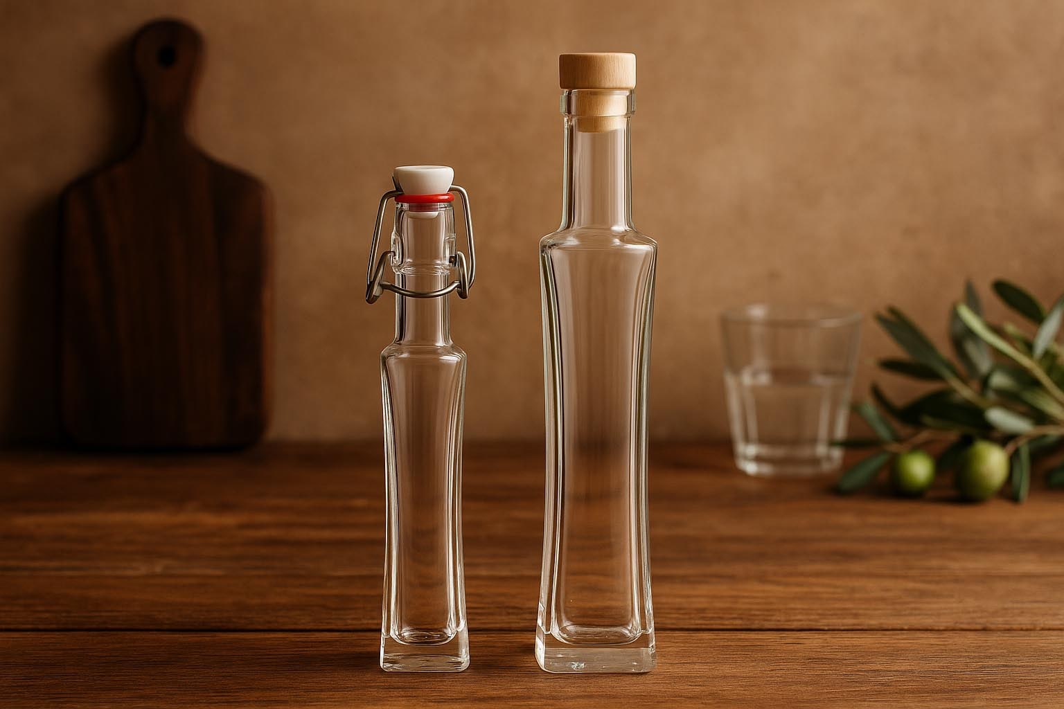 Die Flasche "Koko" ist mit einer wahlweise Bügelverschluss- oder Korkenmündung ausgestattet, wodurch sie sich flexibel an unterschiedliche Bedürfnisse anpasst. Passende Verschlüsse sind in unserem Sortiment erhältlich und garantieren eine sichere und stilvolle Lagerung. Ob für edle Spirituosen, aromatische Brände oder besondere Liköre – mit der Serie "Koko" lassen sich Getränke stilvoll inszenieren.