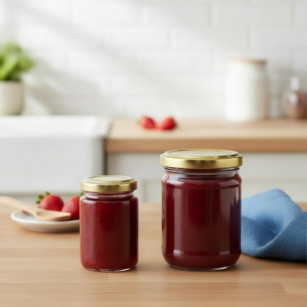 Die Produktserie „Rundglas“ von Flaschenland umfasst hochwertige 110 ml Rundgläser mit einer Twist-Off Mündung (TO 48), die sich durch ihre Vielseitigkeit und Robustheit auszeichnen. Diese Glasbehälter sind ideal für die sichere Aufbewahrung und Konservierung von Lebensmitteln wie Marmelade, Pesto oder anderen Einmachprodukten. Die Rundgläser bestehen aus hitzebeständigem und kältebeständigem Glas, das sowohl mikrowellen- als auch backofenfest ist. Dadurch sind sie besonders flexibel einsetzbar und können problemlos in der Spülmaschine gereinigt werden. Mit einem Fassungsvermögen von 110 ml und der praktischen Twist-Off Mündung bieten sie eine sichere und luftdichte Verschlussmöglichkeit, die das Aroma und die Frische der Inhalte bewahrt.