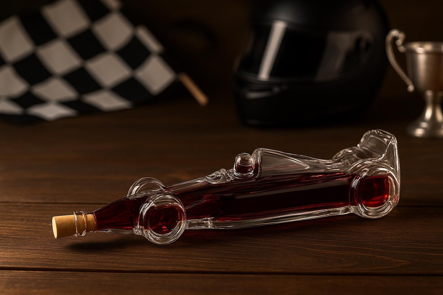 Die Motivflasche „Rennwagen“ ist ein außergewöhnliches Highlight für Motorsport-Fans und Liebhaber stilvoller Abfüllungen. Ihre detailreiche Form fängt die Dynamik und Eleganz eines klassischen Rennwagens perfekt ein und macht sie zur idealen Wahl für besondere Spirituosen, Brände oder Liköre. Gefertigt aus hochwertigem Klarglas, verbindet sie markantes Design mit erstklassiger Verarbeitung. Die Korkenmündung sorgt für eine stilvolle Versiegelung und verleiht der Flasche eine edle Note. Ob als Geschenk für Rennsport-Begeisterte oder als exklusive Sammlerflasche – die „Rennwagen“-Flasche setzt jedes Getränk mit Geschwindigkeit und Stil in Szene.