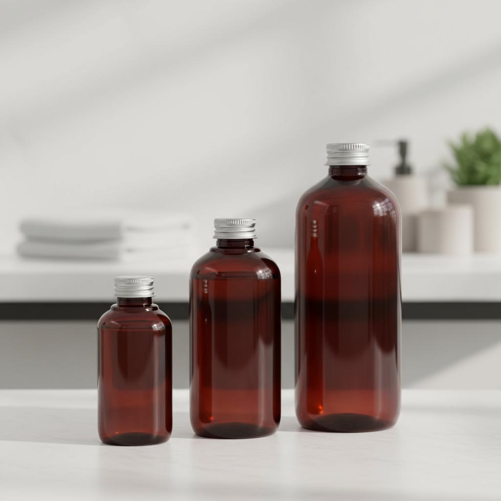 Die Produktserie "Victor's Best" umfasst hochwertige 200 ml Recycling-Kunststoffflaschen aus PCR-Material, die durch ihre nachhaltige Herstellung und UV-Beständigkeit überzeugen. Diese braunen Flaschen mit der Mündung 24/410 sind Teil der PET GPI 410 Produktlinie und zeichnen sich durch ihre Umweltfreundlichkeit und Robustheit aus. Die Kunststoffbehälter der Serie sind aus recyceltem PET (PCR) gefertigt, was eine ressourcenschonende Nutzung garantiert. Die braune Färbung schützt den Inhalt effektiv vor UV-Strahlung, wodurch die Haltbarkeit empfindlicher Kosmetikprodukte verlängert wird. Mit einem Volumen von 200 ml und einer standardisierten Mündung (24/410) sind die Flaschen vielseitig einsetzbar und kompatibel mit zahlreichen Verschlussarten.