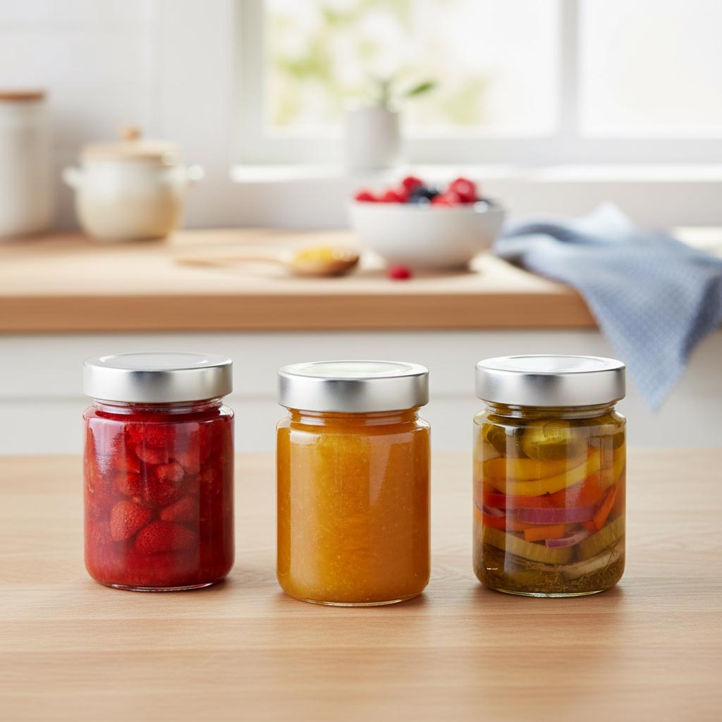 Die Produktserie „Rundglas Deep Twist Off“ von Flaschenland umfasst hochwertige Glasbehälter, die speziell für vielseitige Aufbewahrungs- und Konservierungszwecke entwickelt wurden. Das Hauptmerkmal dieser Serie ist die innovative Deep-Twist-Off-Mündung (DTO 58), die eine sichere und einfache Handhabung gewährleistet. Die 253 ml Rundgläser „Summertime“ zeichnen sich durch ihre robuste und langlebige Materialqualität aus. Sie sind kältebeständig, hitzebeständig, mikrowellenfest sowie backofenfest und somit äußerst vielseitig einsetzbar. Darüber hinaus sind sie spülmaschinengeeignet, was eine einfache Reinigung garantiert. Das klare Glas ermöglicht eine attraktive Präsentation des Inhalts, während die runde Form optimalen Stauraum bietet.
