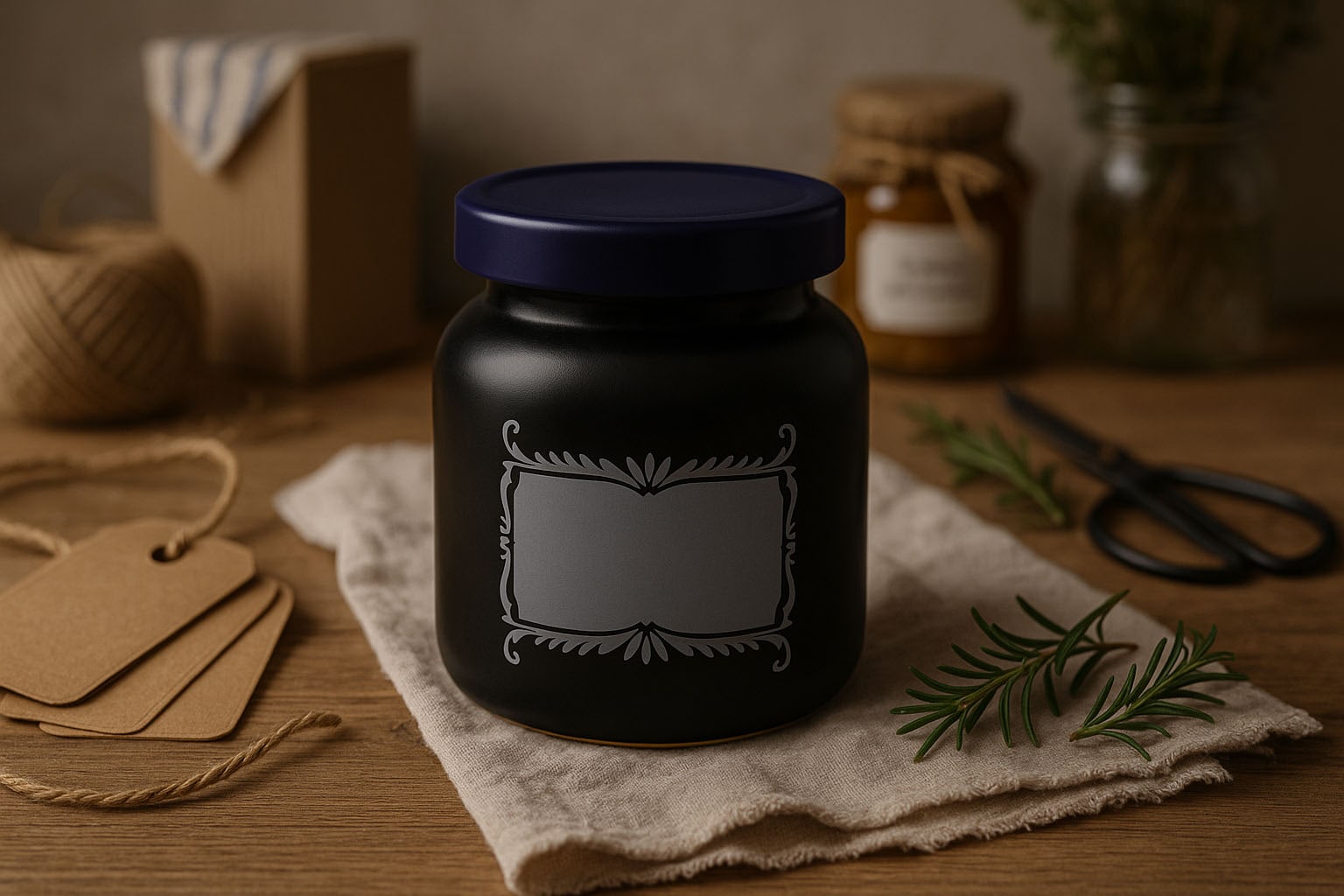 Flaschenland 270 ml Steinzeugtopf, Motiv: Etikettenfeld, Keramik, schwarz, Mündung: Stülpdeckel