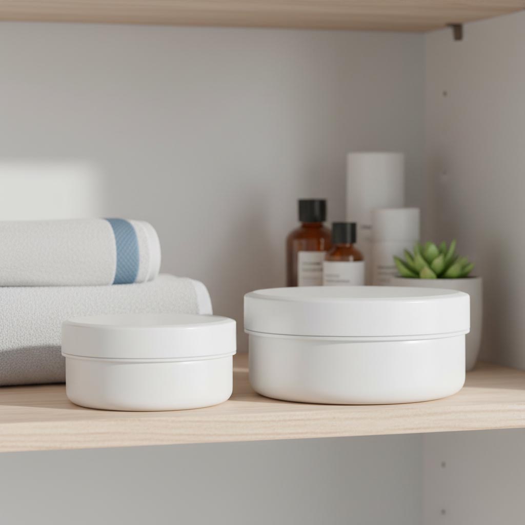 Die Produktserie „PP-Tiegel White Line“ von Flaschenland umfasst hochwertige 35 ml Kunststoffdosen aus robustem Polypropylen (PP) in klassischem Weiß mit praktischem Schraubverschluss. Diese Behälter zeichnen sich durch ihre Vielseitigkeit und technische Zuverlässigkeit aus. Die Kunststoffdosen der White Line Produktfamilie sind kältebeständig, UV-beständig und spülmaschinengeeignet, was eine lange Haltbarkeit und einfache Reinigung gewährleistet. Die runden Behälter bestehen aus hochwertigem PP-Material, das besonders widerstandsfähig gegenüber Chemikalien und Temperaturschwankungen ist. Mit einem Fassungsvermögen von 35 ml eignen sie sich ideal für die Aufbewahrung von Cremes und kosmetischen Produkten. Der sichere Schraubverschluss schützt den Inhalt zuverlässig vor Verunreinigungen und Austrocknung. Diese Kunststoffdosen sind optimal für Ihre Kosmetik.
