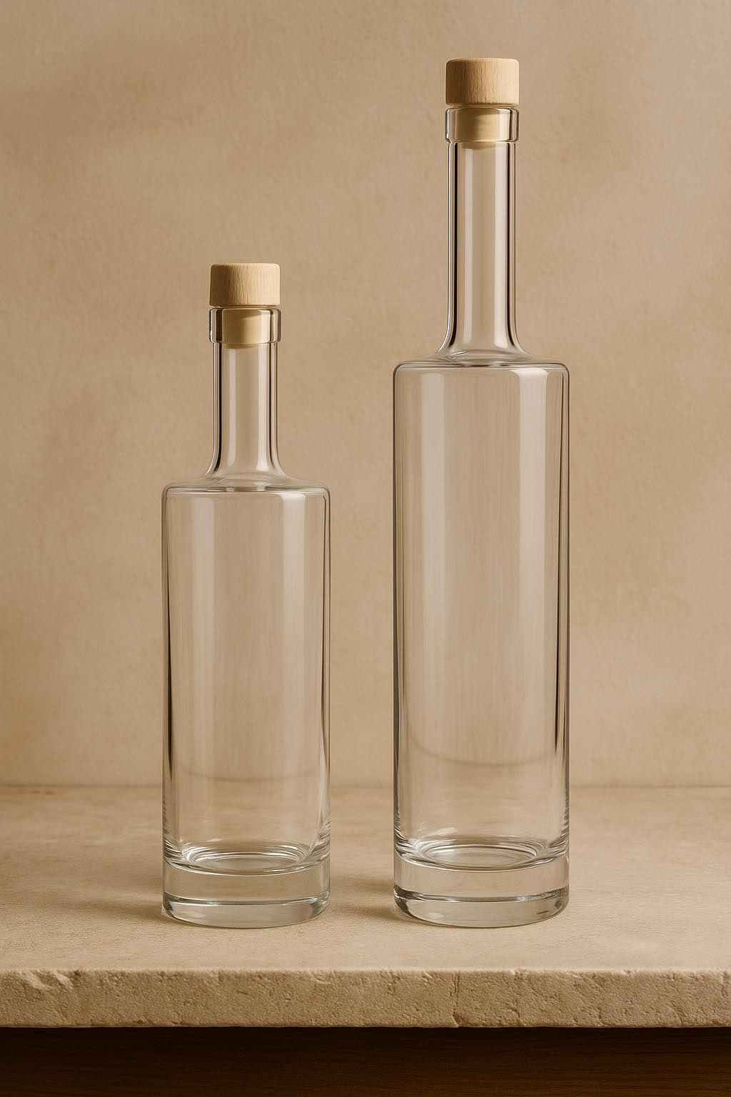Die Serie "Titano" vereint kraftvolle Präsenz mit raffinierter Schlichtheit und setzt neue Maßstäbe in der Welt hochwertiger Glasverpackungen. Diese edle Zylinderflasche aus Klarglas beeindruckt mit einem massiven Glasboden, der nicht nur Stabilität bietet, sondern auch optische Tiefe und Exklusivität vermittelt. Erhältlich in den Größen 500 und 700 ml, eignet sich "Titano" perfekt für hochwertige Spirituosen, edle Liköre und charaktervolle Destillate. Die Korkmündung sorgt für eine klassische und sichere Versiegelung – passende Verschlüsse sind in unserem Sortiment erhältlich. Mit ihrer robusten Eleganz und zeitlosen Ästhetik ist "Titano" die ideale Wahl für anspruchsvolle Marken, die Wert auf Qualität und Ausdrucksstärke legen.