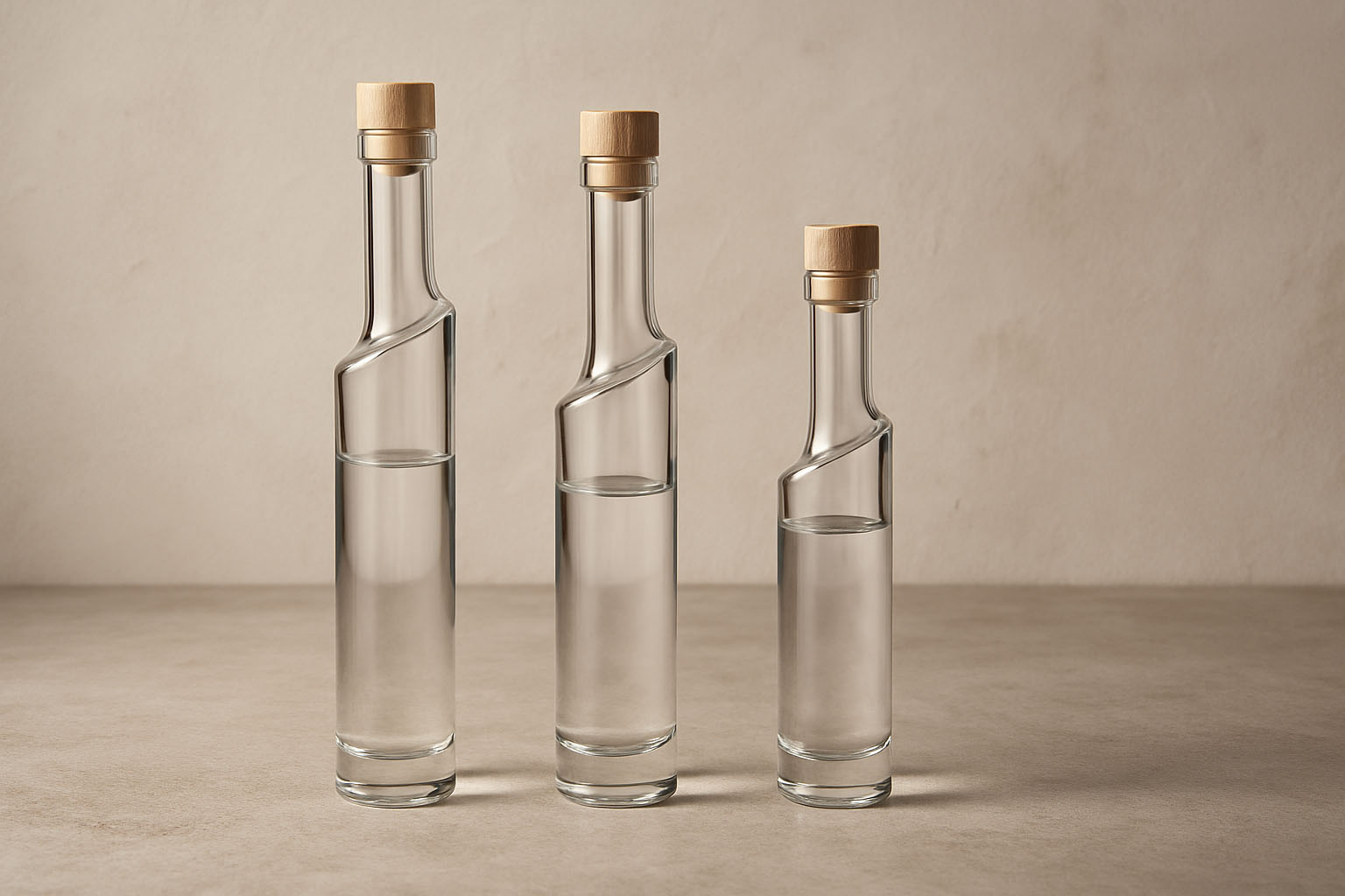 Die Serie „Feeling“ vereint kunstvolle Ästhetik mit funktionaler Perfektion und setzt neue Maßstäbe in der Flaschenarchitektur. Ihre schlanke, elegante Form wird durch einen markanten, asymmetrischen Hals ergänzt, der ihr einen einzigartigen Charakter verleiht. Diese außergewöhnliche Gestaltung macht die Flasche zu einem echten Kunstobjekt und einer stilvollen Wahl für hochwertige Abfüllungen. Mit einem Fassungsvermögen von 200 bis 500 ml bietet „Feeling“ die ideale Größe für edle Spezialitäten. Die Korkenmündung sorgt für eine klassische und sichere Verschlusslösung – passende Korken sind in unserem Sortiment erhältlich.
