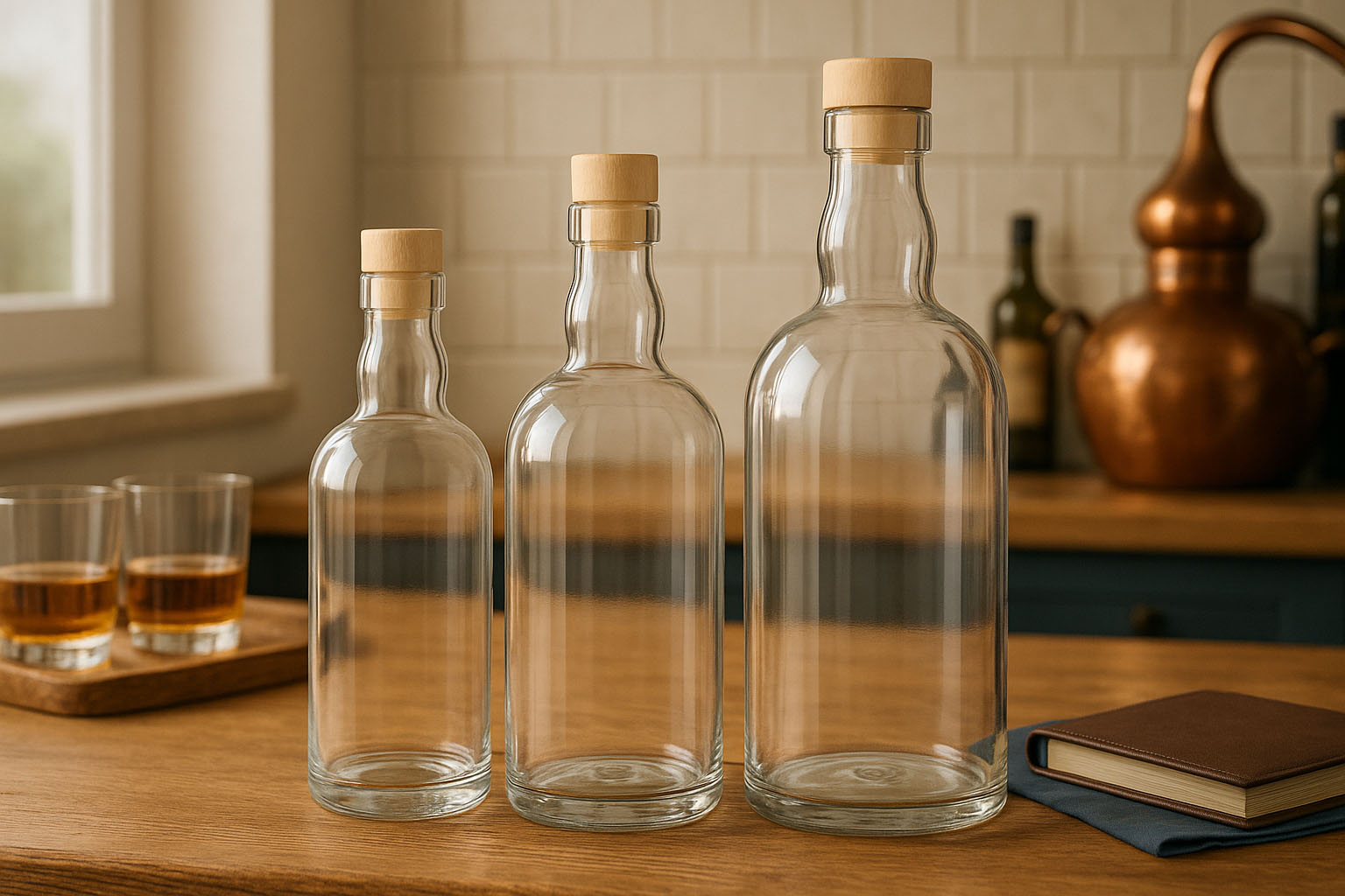 Die in Europa hergestellte Kollektion „Aberdeen“ verkörpert zeitlose Eleganz und hochwertige Verarbeitung. Mit ihrem charakteristischen gewellten Hals und der Möglichkeit, sie mit einem Korken zu verschließen, bietet diese Serie eine stilvolle Lösung für die Abfüllung von Whisky, Cognac und anderen edlen Spirituosen.