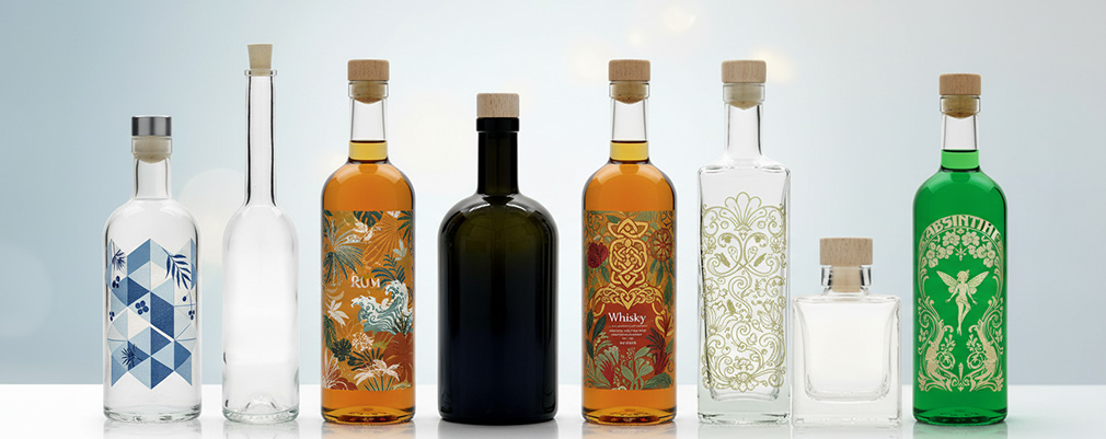 Die gängigsten Flaschenformen für Spirituosen: